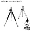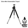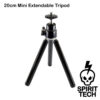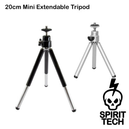 The tripod can be easily adjusted to any height from 12cm to 20cm by sliding the leg segments out or in.