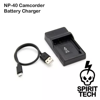 Compact battery charger for NP-40 style batteries used by our Full Spectrum and Night Vision Camcorders.